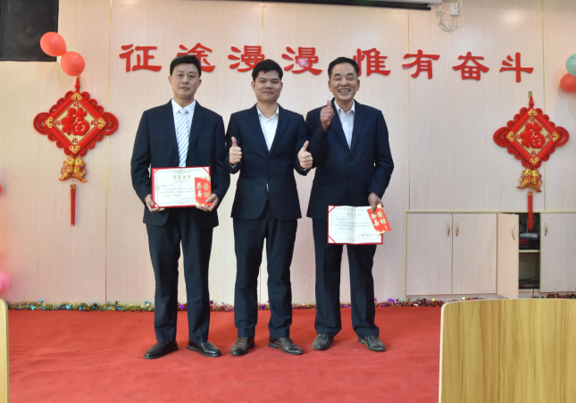 副總經(jīng)理羅永新為李開、羅執(zhí)輝、唐明階頒發(fā)技改鼓勵獎