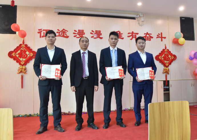 總助韋繼初為陽專、胡賽、羅曉明頒發(fā)優(yōu)秀管理獎