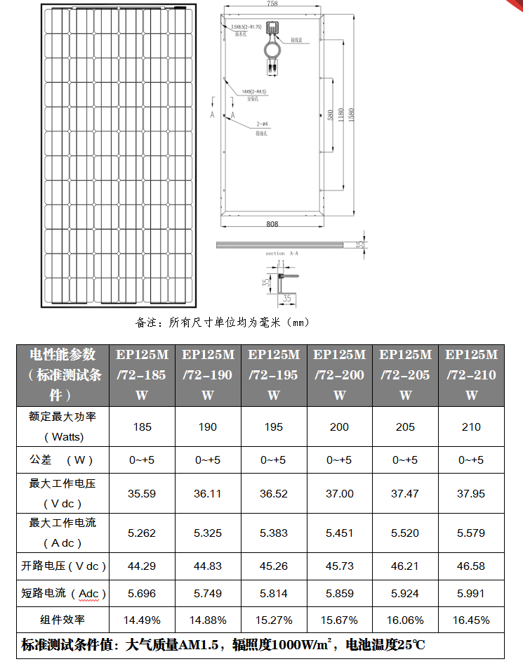 125單晶72片組件(185W-210W)工程圖紙(2BB)