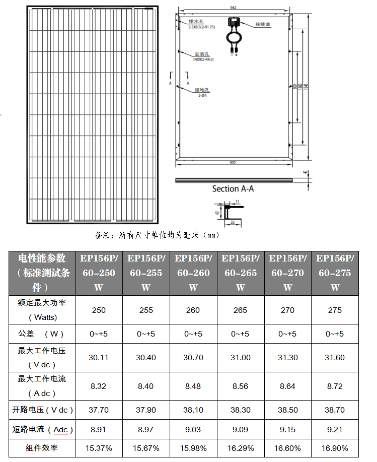 156多晶60片組件(250W-275W)工程圖紙(4BB)